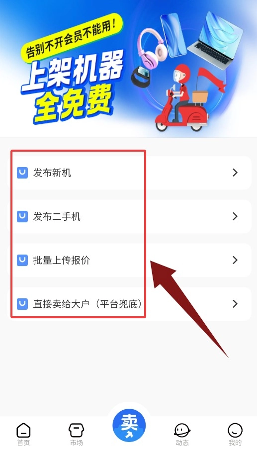 发布界面支持新机、二手机的上架操作,还能进行批量报价或向大客户直接销售。