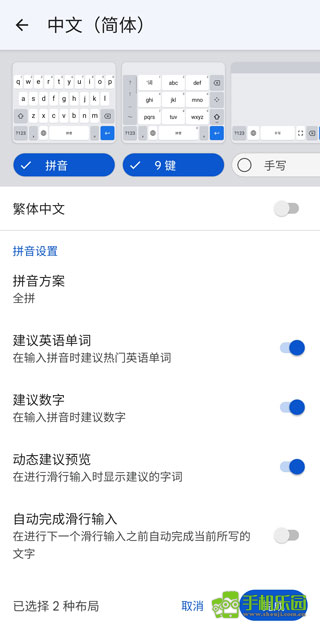 点击“设置”按钮会跳转至手机的键盘设置界面,在该界面中开启谷歌键盘后,即可完成操作并返回。