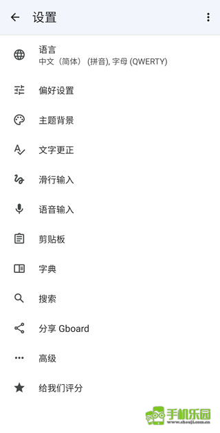 这时就能看到谷歌键盘的基本设置界面了,点击顶部的“语言”选项即可。