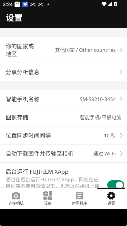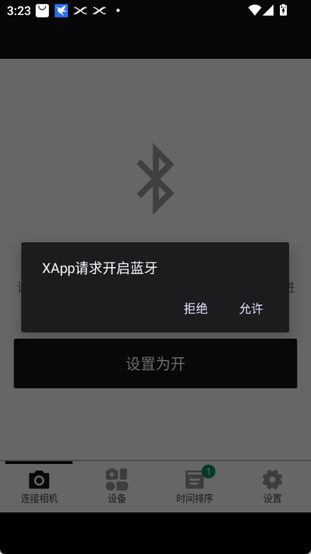 请打开fujifilmx应用,并授予其蓝牙、Wi-Fi、位置以及存储权限。