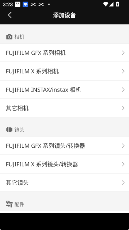 在手机端操作时,点击XApp右上角的“+”按钮,接着选择与设备对应的相机型号,最后输入配对码,即可完成蓝牙配对流程。