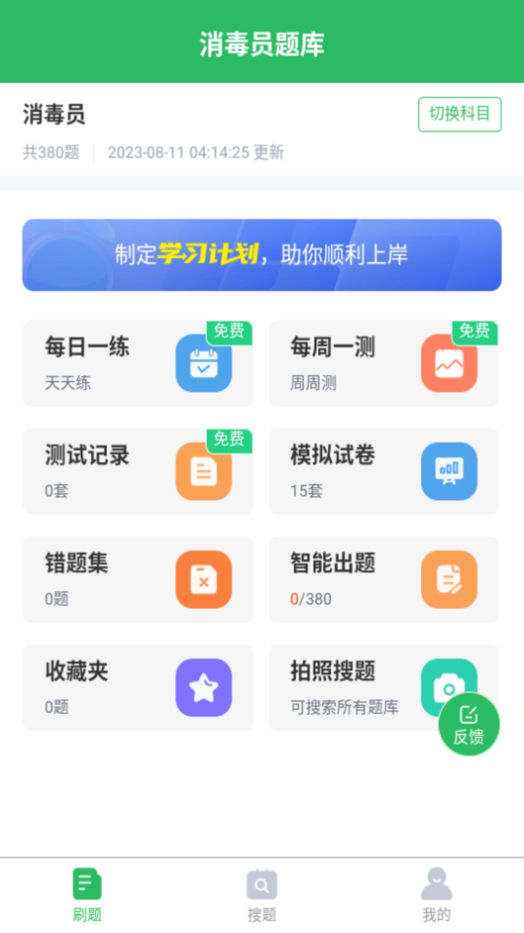 消毒员题库安装是一款专为消毒行业从业者打造的移动学习工具,覆盖医院、食品加工、公共场所等不同领域的消毒规范与实操题库。借助1500多道权威题目以及3D消毒场景模拟,助力用户快速掌握消毒剂配比、器械处理、感染控制等核心内容。配备国家最新消毒标准动态更新功能,尤其适合考证复习、日常培训或技能提升,让专业学习如同扫码消毒般轻松高效。欢迎有需要的朋友们在本站下载使用!
