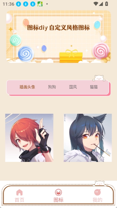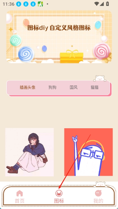 接着挑选自己钟爱的DIY图标,对图标背景、颜色、图案进行设置,添加文字后点击保存。
