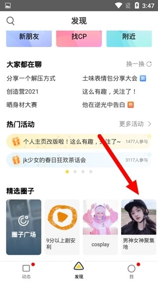 下面为大家介绍如何加入心仪的圈子:首先进入发现界面,找到想加入的圈子后点击进入即可。