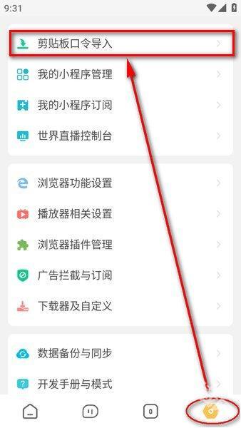 要是软件没弹出提示框,就打开右下方的设置,然后点击“剪贴板口令导入”。