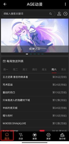 首页页面会每周更新放送内容,你可以在这里查看每天的动漫更新情况。