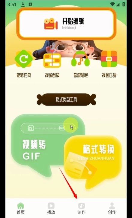 首先打开剧享剪辑,在主页点击下方的“创作”按钮