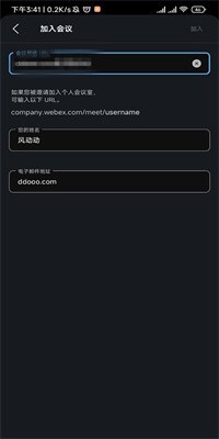 输入会议号或者会议的URL链接,填写好姓名与电子邮箱后,点击页面右上角的【加入】按钮。