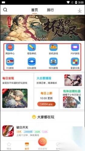 打开软件后,玩家在首页就能看到平台提供的各类游戏。