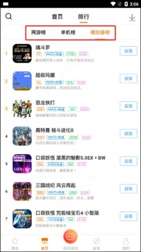 同时还罗列了网游榜、单机榜、模拟器榜。