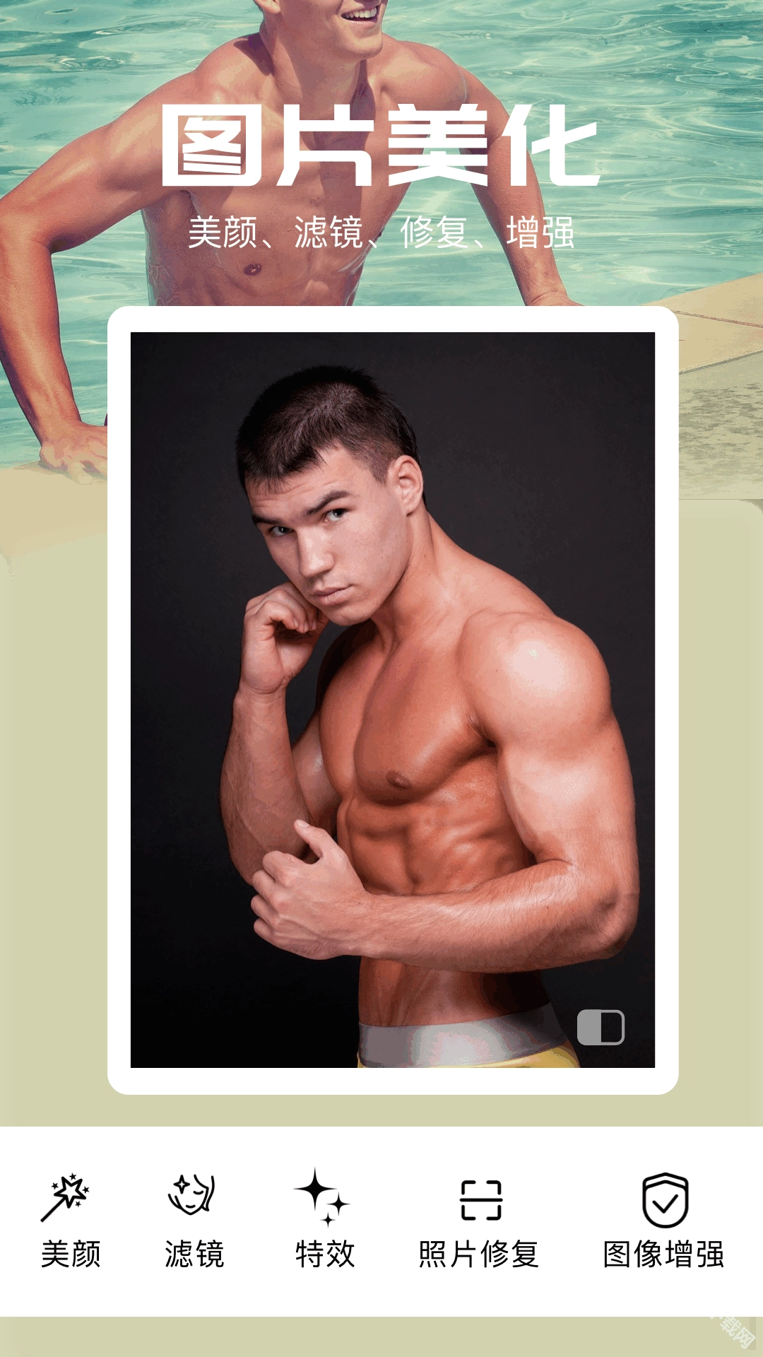 GIGABODY是一款功能强大的照片处理手机应用。它主打肌肉修图特色,配备了丰富实用的修图工具,用户能自主调整肌肉线条与分布,轻松打造健硕体态。智能AI增肌功能尤为便捷,只需导入照片,系统便会自动识别并生成适配的肌肉效果,多款型男身材模板一键套用,轻松塑造理想身形。除此之外,软件还提供了海量美颜滤镜效果供用户选择,感兴趣的朋友不妨来本站体验一番!