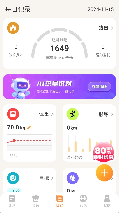 完成身体测评后,我们就能进入首页开启个人的轻断食体验了。