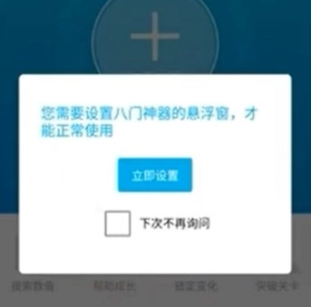 接下来,会弹出一个设置窗口,我们点击“立即设置”,然后开启悬浮窗功能。