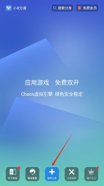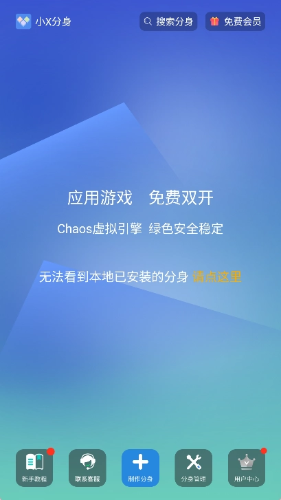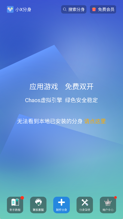 并启动:首先要确认已在本站安装好小x分身,打开该应用后进入主界面。