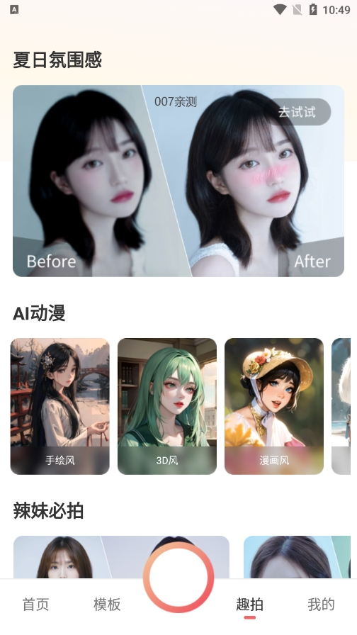 在首页能看到“发型测试”“智能变美”“漫画脸”之类的功能。