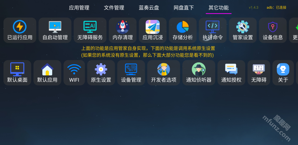 首先前往魔趣网下载并安装应用管家tv的最新版本。进入应用首页后,点击对应图标,就能弹出应用管理界面。