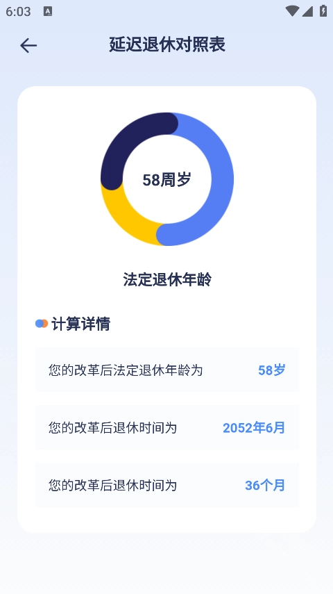 用户只需填写出生年月与性别,软件便会依据最新的退休年龄政策,算出其退休年龄及对应的退休时间。这对那些不明确自己退休时间的人而言,是一项相当实用的功能。