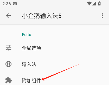 安装小企鹅输入法5后,在该软件的界面中,找到并选择附加组件选项。