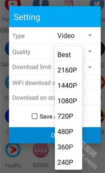 然后在下拉中选择你想要的视频清晰度。