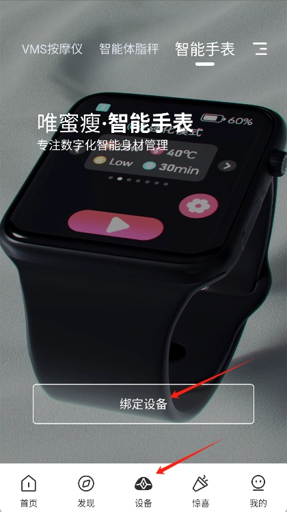 添加智能设备的操作步骤如下:首先在主界面底部的导航栏里找到“设备”选项并点击,接着进入智能手表页面后,点击其中的“绑定设备”选项即可。