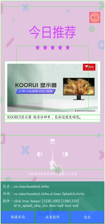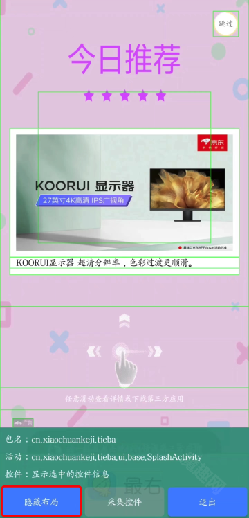 回到桌面后,打开你要跳过广告的那个软件。进入软件首页时会弹出广告,此时点击悬浮弹窗上的“隐藏布局”按钮即可。