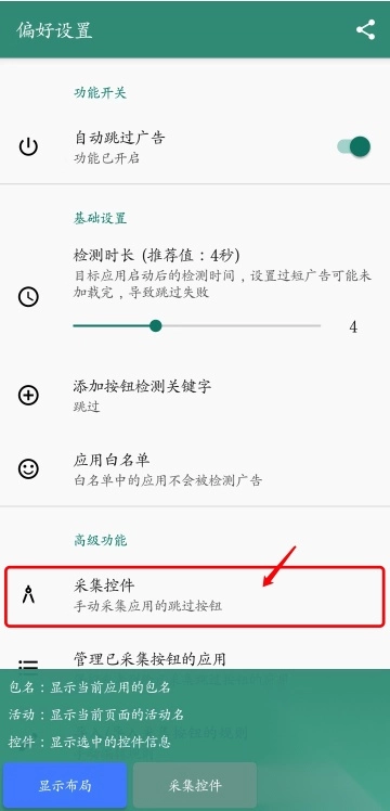 在使用雷跳跳前,需先授予软件无障碍权限。完成设置后,打开“偏好设置”,找到并点击“采集控件”,此时会弹出一个可拖动的顶层悬浮弹窗。