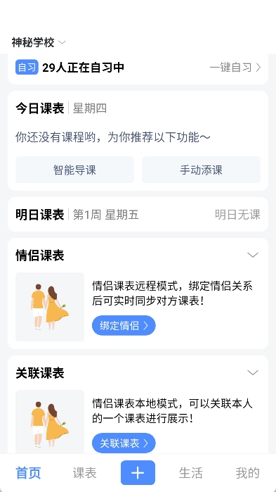 支持关联情侣双方的课程表,这样能方便了解彼此的学习进度,进而增进互动与沟通。