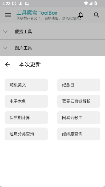 覆盖便捷、图片、设备、查询、转换五大类别,工具十分全面。