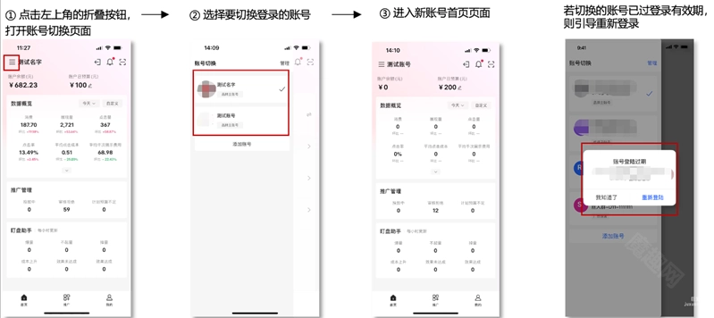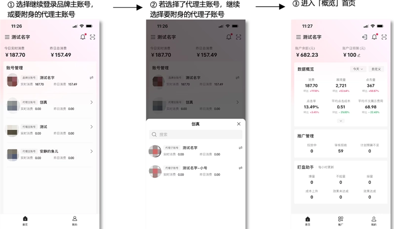 当客户需要同时管理多个账号时,可在首页直接进行账号切换操作。此外,对于那些已停止运营但曾登录过的历史账号,客户可以选择删除;而对于尚未登录过的新账号,也能进行添加操作。
