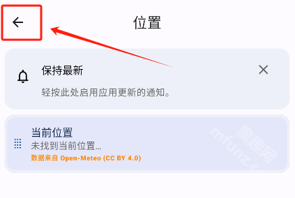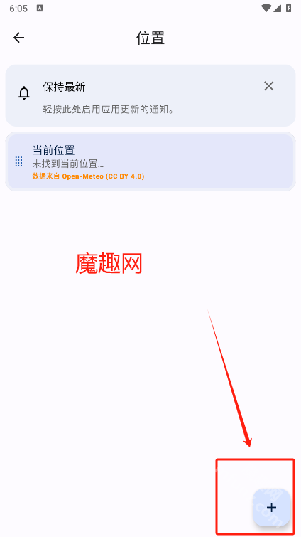 首先前往魔趣网下载并安装微风天气应用。进入应用首页后,需要添加所在位置信息。