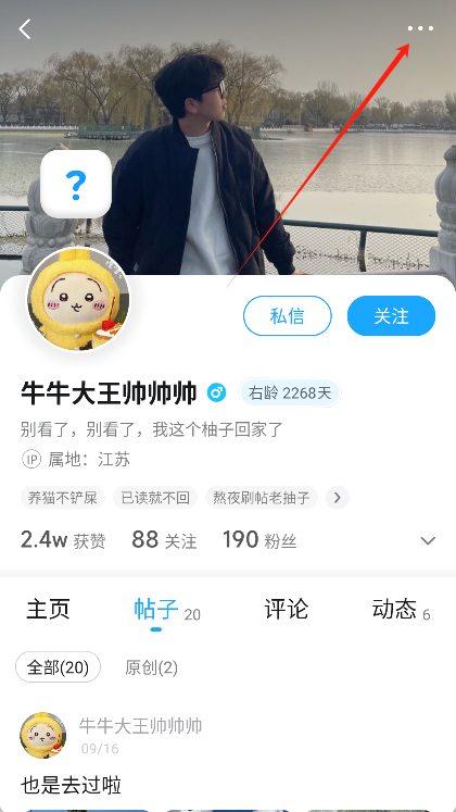 进入该用户的个人主页后,找到并点击页面上的“···”按钮。