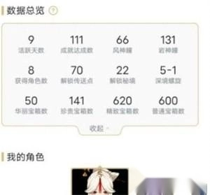输入角色的UID和等级后,点击“获取验证码”按钮,随后进入游戏内的邮箱进行查看。在验证码验证通过之后,您就可以查看该角色的全部数据了,其中涵盖活跃天数、成就完成的数量、风神瞳与岩神瞳的收集状况、已获得的角色数量、解锁的传送点、解锁的秘境、深境螺旋的层数,以及开启的宝箱数量(华丽宝箱、珍贵宝箱、精致宝箱、普通宝箱都会有显示)。