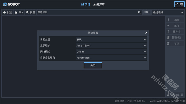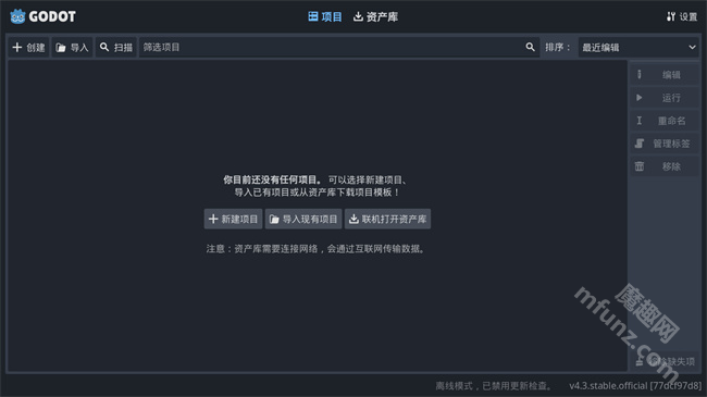 首先前往魔趣网下载并安装Godot Editor 4,待安装完成后,启动该软件进入操作界面。