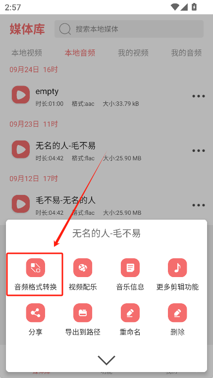 找到你想转换的音频,点击后边的“三个点”