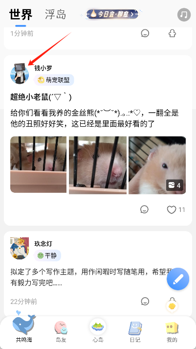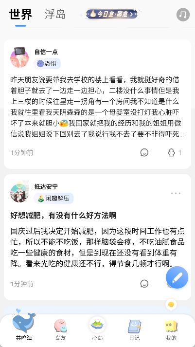 - 点击“共鸣海”,浏览他人发布的心情日记。