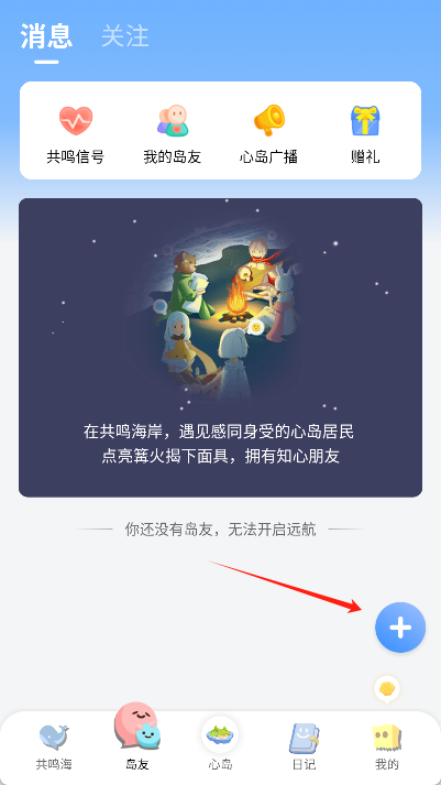 进入“岛友”页面后,点击页面上的“+”号,即可添加心空挚友。