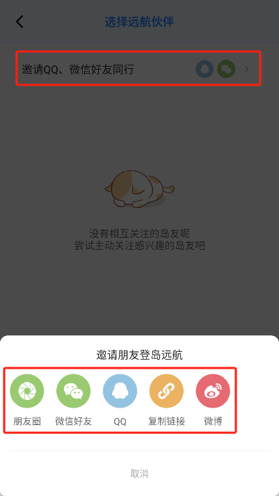 - 点击“邀请QQ、微信好友同行”的选项,挑选发送的方式与平台。