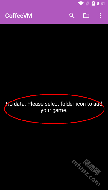 首先前往魔趣网,下载并安装coffeevm java模拟器。进入该模拟器的首页后,会看到界面上显示没有游戏数据。