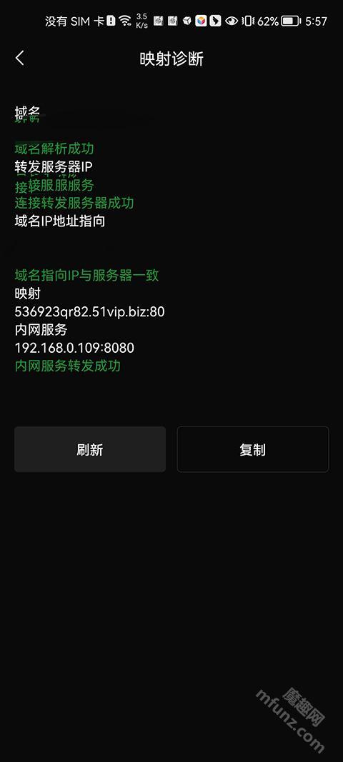 你可以这样操作:先选择自定义映射选项,类型这里选HTTP;内网主机需要填写ksweb界面显示的内网IP,或者也能进入连接WiFi的界面查看手机本机IP;接着把内网端口设置为8080,这样就完成了。