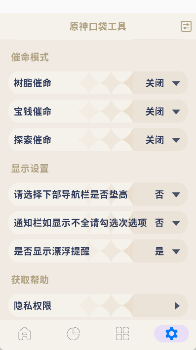 工具还具备桌面小组件功能,能够实时展示树脂、洞天宝钱等相关信息。