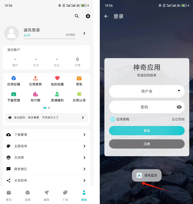 完成安装后,您需要注册并登录账户,才能参与社区交流、提交应用程序等操作。软件内的所有应用程序都是免费的。
