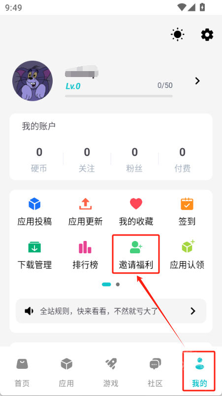 进入我的模块选择【邀请福利】。