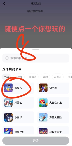 然后再选择你和好友想挑战的项目,点击开始即可。
