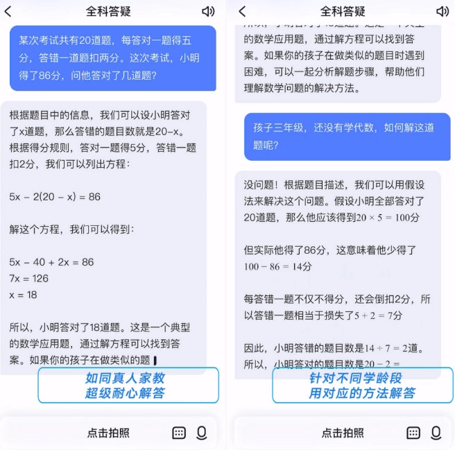 有道小P会依据孩子所处学段的知识水平,调整答题思路并进行分步讲解,引导孩子主动去探索,从而真正理解试题的内容。