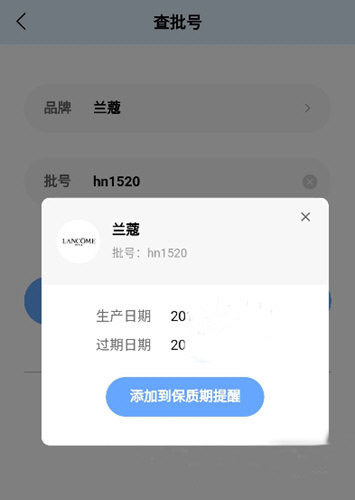 会显示该批号对应的生产日期与过期日期,也可以添加到保质期提醒当中。