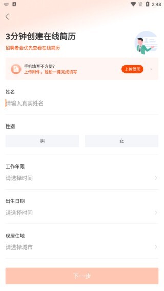 【简历创建】展示简历填写的完整程度,并推荐与简历相匹配的职位。