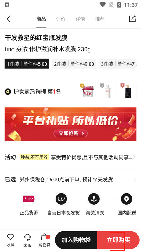 这里面给用户展示了详细的商品图文介绍,我们点击进行购买。