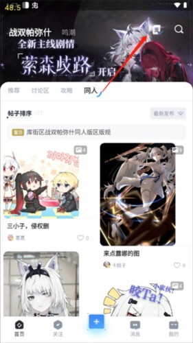 首先,作为一个库街区,它为用户提供最新的游戏资讯与动态,便于用户快速获取游戏关键信息,还设有【推荐】、【讨论区】、【攻略】、【同人】等不同内容版块。