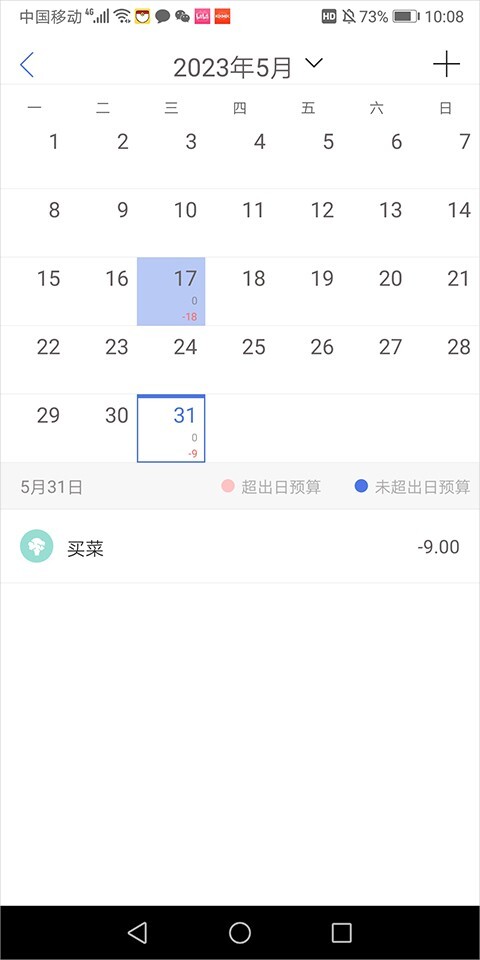 账单历史记录可随时查看。在首页点击日历图标(位置参考下图橙色箭头所指),进入后选择具体日期,就能查看该日期对应的历史记录。