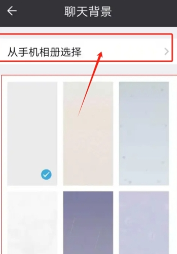 5、进入聊天背景页面后,可直接点击选取个人所需的背景,若想从手机相册挑选,点击“从手机相册选择”即可。